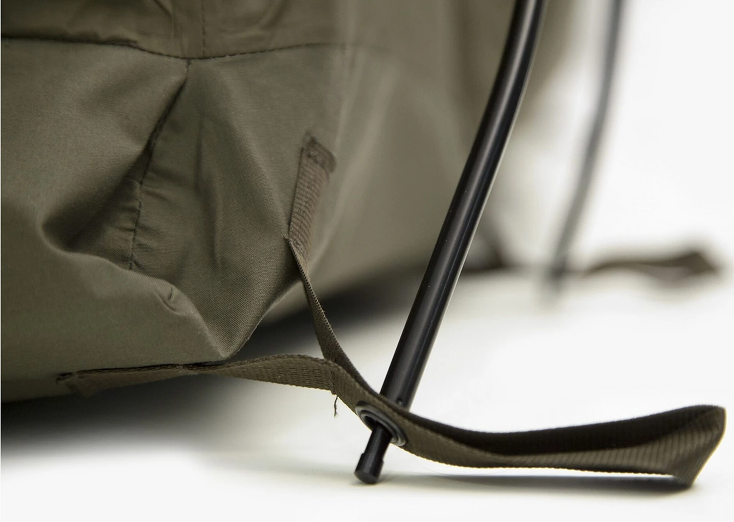 Observer Plus: Das perfekte Sniper Biwakzelt mit selbststehender Doppel-Gestänge-Unterstützung. Die beiden kreisförmigen Zeltstangen formen eine Art Kuppel am Kopfende, die für den Anwender genügend Platz bietet, um die Ausrüstung unterzubringen. Der Observer Plus verfügt über eine leicht abfallende Linienführung vom Kopfbereich hin bis zum Fußende. Damit soll verhindert werden, leicht erkannt/entdeckt zu werden.