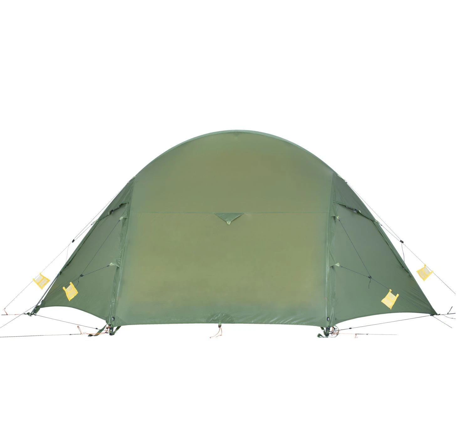 Das Orion Extreme ist das Zelt für anspruchsvolle Touren, bei denen dauerhafte Materialien und Haltbarkeit besonders gefragt sind. Die spezielle, freistehende Konstruktion des Giebel-Tunnelzelts bewährt sich schon seit 20 Jahren auf zahlreichen Expeditionen und Trekkings rund um den Globus. Die bis zum Boden reichende Firststange sorgt für eine hohe Stabilität bei Wind. Gleichzeitig entsteht so ein hoher Innenraum, der das Leben im Zelt komfortabler macht. Das Orion ist komplett freistehend und das Innenzelt lässt sich bei guter Wetterlage auch alleine aufstellen. In den beiden grossen Apsiden findet sich genügend Platz für Ausrüstung und auch in der überarbeiteten Gear Loft lassen sich kleinere Gegenstände verstauen. Die Türen des Aussenzelts sind variabel und lassen sich bequem vom Innenzelt aus bedienen. Zusätzlich sorgt ein robustes, schwarzes Moskitonetz für beste Sicht nach draussen.