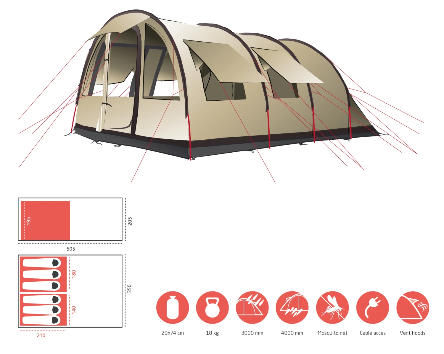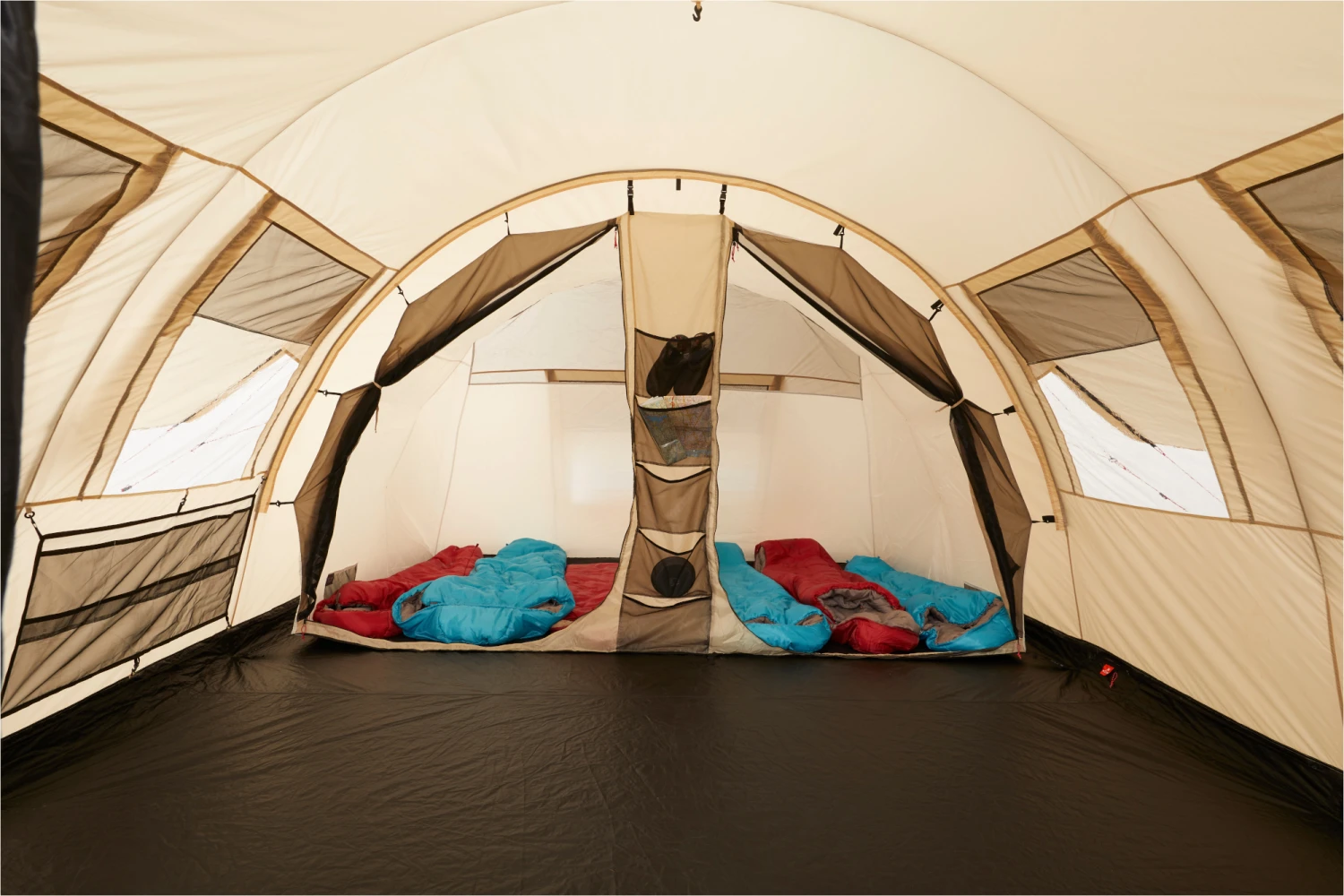Das Grand Canyon Helena 6-Personen Zelt ist das größte HELENA-Zelt von Grand Canyon! Das Helena 6 Tunnelzelt ist für Familien und Gruppen bestens geeignet mit einem hervorragenden Raumgefühl und zwei separaten Schlafbereichen. Beide mit Platz für bis zu drei Personen und mit ausreichend Stauraum für Gepäck und Ausrüstung. Die große Apsis ist durchgängig über 2 Meter hoch und bietet Platz zum gemütlichen Zusammensitzen am Tag oder beim Abendessen. Große abgedeckte Belüftungsöffnungen und Fenster mit Moskitonetzen auf der Außenplane dienen einer angenehmen Luftzirkulation und für ein gutes Raumklima im Zelt.