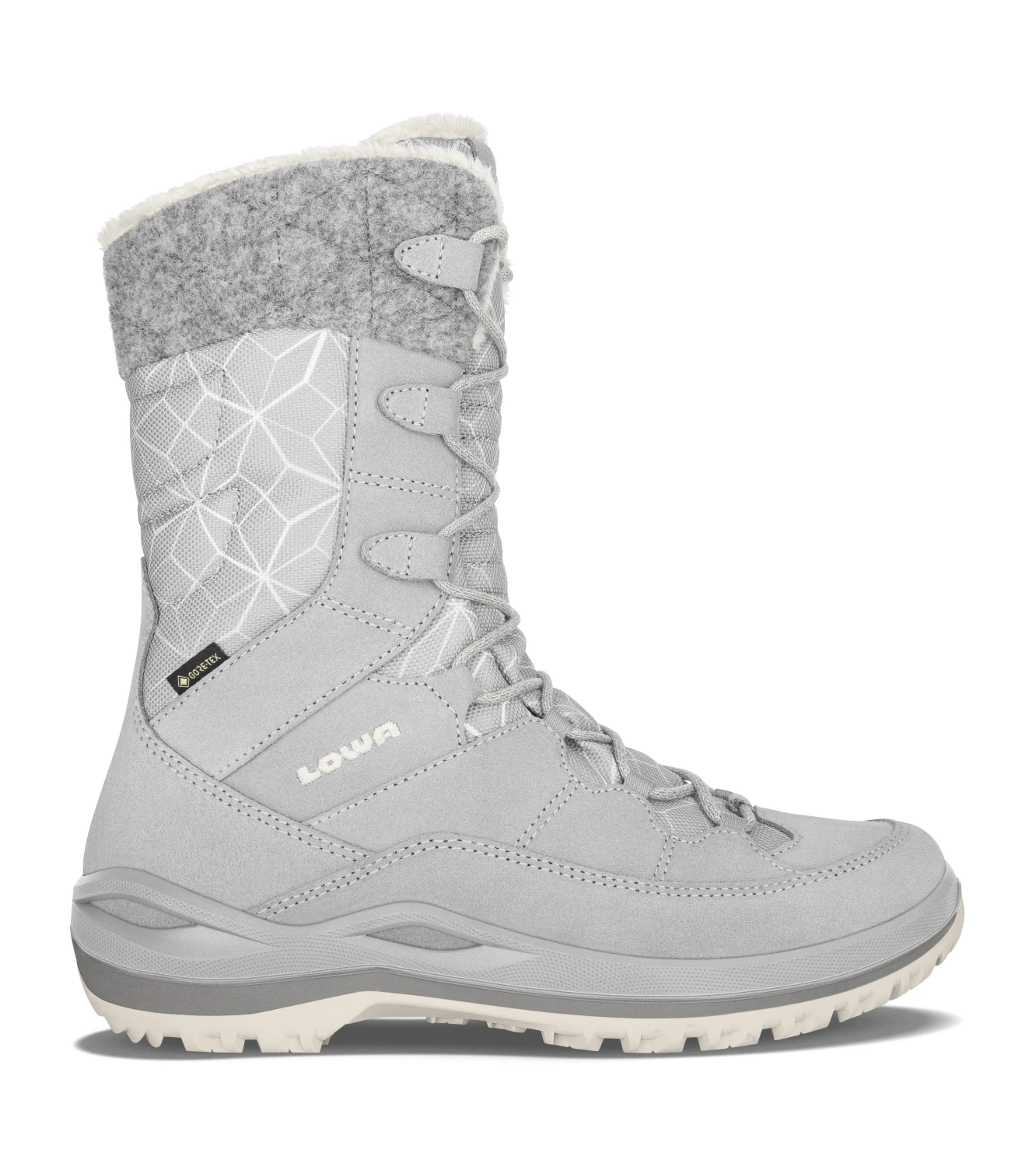 Es muss kein Widerspruch sein, sich selbst treu zu bleiben und zugleich immer wieder neue Akzente zu setzen. Genau das gelingt auch den trendigen Winterboots. Denn obwohl der neue BARINA III GTX Ws optisch komplett überarbeitet wurde, bleibt in puncto Funktionalität alles beim Alten. Das gilt sowohl für das robuste Material mit gesteppten Elementen aus Mikrofaser, Filz und Spaltleder als auch für den patentierten LOWAMONOWRAP®-Rahmen, der zusätzliche Stabilität bietet. Wie gewohnt sorgt das kuschelige GORE-TEX-Partelana-Futter bis hinauf zur Wade für besten Komfort in der kalten Jahreszeit, während die TPU-Laufsohle auch abseits nicht geräumter Straßen für den nötigen Grip sorgt. Erfrischend anders fällt hingegen das neue Design am Schaft aus, welches den Winterschuhen fast schon einen edlen Charakter verleiht.