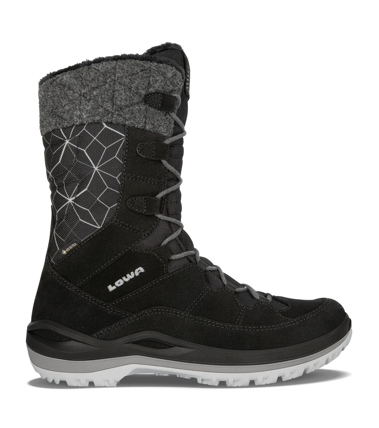 Es muss kein Widerspruch sein, sich selbst treu zu bleiben und zugleich immer wieder neue Akzente zu setzen. Genau das gelingt auch den trendigen Winterboots. Denn obwohl der neue BARINA III GTX Ws optisch komplett überarbeitet wurde, bleibt in puncto Funktionalität alles beim Alten. Das gilt sowohl für das robuste Material mit gesteppten Elementen aus Mikrofaser, Filz und Spaltleder als auch für den patentierten LOWAMONOWRAP®-Rahmen, der zusätzliche Stabilität bietet. Wie gewohnt sorgt das kuschelige GORE-TEX-Partelana-Futter bis hinauf zur Wade für besten Komfort in der kalten Jahreszeit, während die TPU-Laufsohle auch abseits nicht geräumter Straßen für den nötigen Grip sorgt. Erfrischend anders fällt hingegen das neue Design am Schaft aus, welches den Winterschuhen fast schon einen edlen Charakter verleiht.