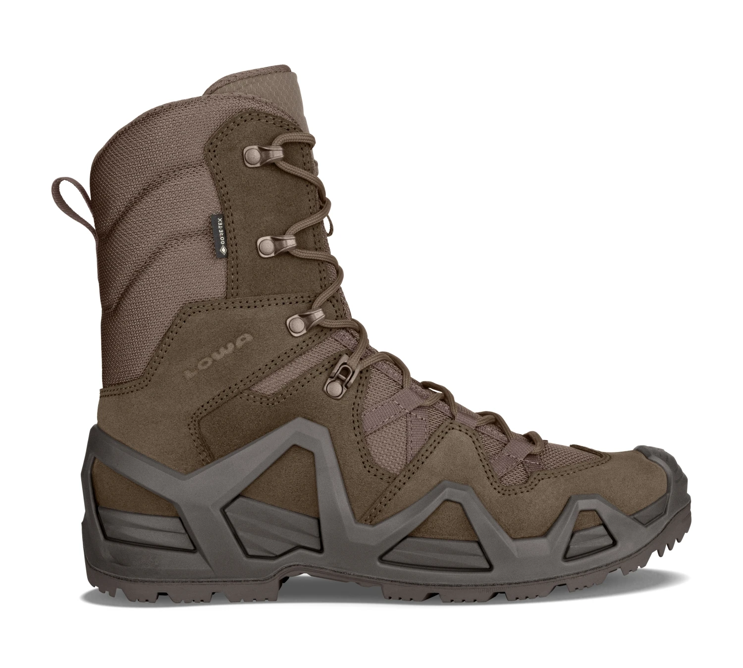 Der Lowa Zephyr MK2 GTX HI TF ist ein Einsatzstiefel mit idealem Kompromiss zwischen Agilität, Leichtigkeit und Stabilität. Der erhöhte HI-CUT Schaft sorgt für die notwendige Unterstützung beim Fallschirmspringen und Fast-Roping-Einsätzen. Die verwendeten Obermaterialien bestehen aus einer Kombination von wasserabweisendem und reißfestem Veloursleder und abriebfestem und atmungsaktivem CORDURA®-Material. Ein innovativer Klemmhaken ermöglicht die individuelle Anpassbarkeit der Schnürung im Vorfuß- und Knöchelbereich. Das wasserdichte und hochatmungsaktive GORE-TEX Extended Comfort Footwear Laminat eignet sich ideal für den Einsatz in gemäßigten und eher nassen Umgebungen. Die 2-lagige PU-Zwischensohle mit MONOWRAP®-Frame umgibt und stützt den Fuß wie eine Art Exoskelett.