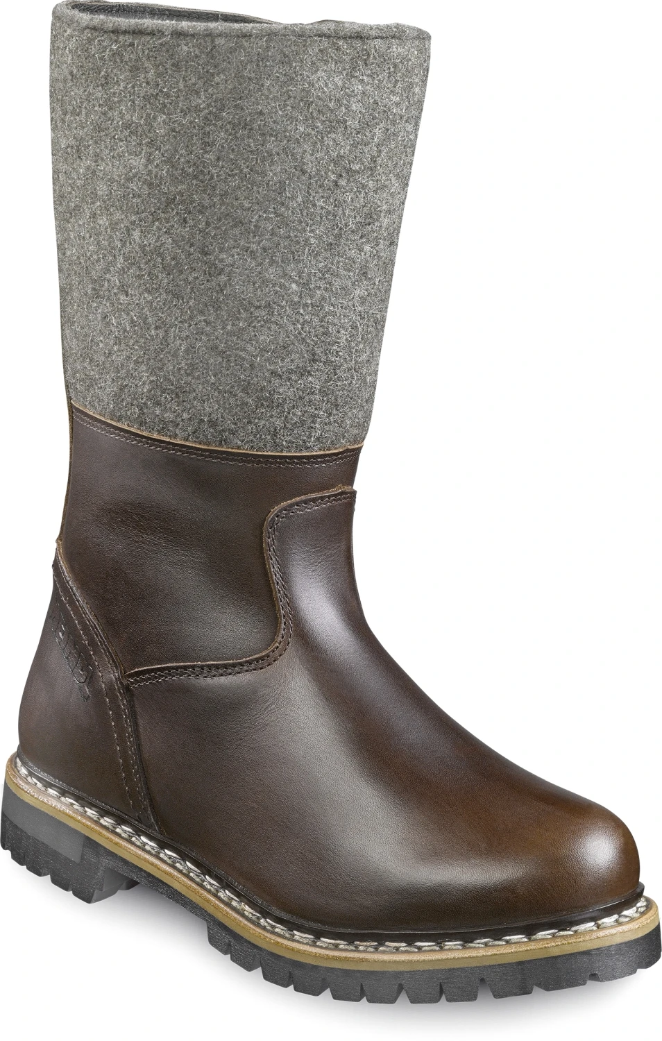 Modischer und äußerst robuster Winterstiefel von Meindl. Dieser zwiegenähte Stiefel aus dem Hause Meindl kombiniert die Obermaterialen Anilinleder und Filz. Durch das Lammfellfutter eignet sich der Filzmoos bis zu – 30 Grad Celsius. Die Vibram Montagnasohle ist äußerst robust und sorgt, auch bei winterlichen Verhältnissen, für einen sicheren Halt.