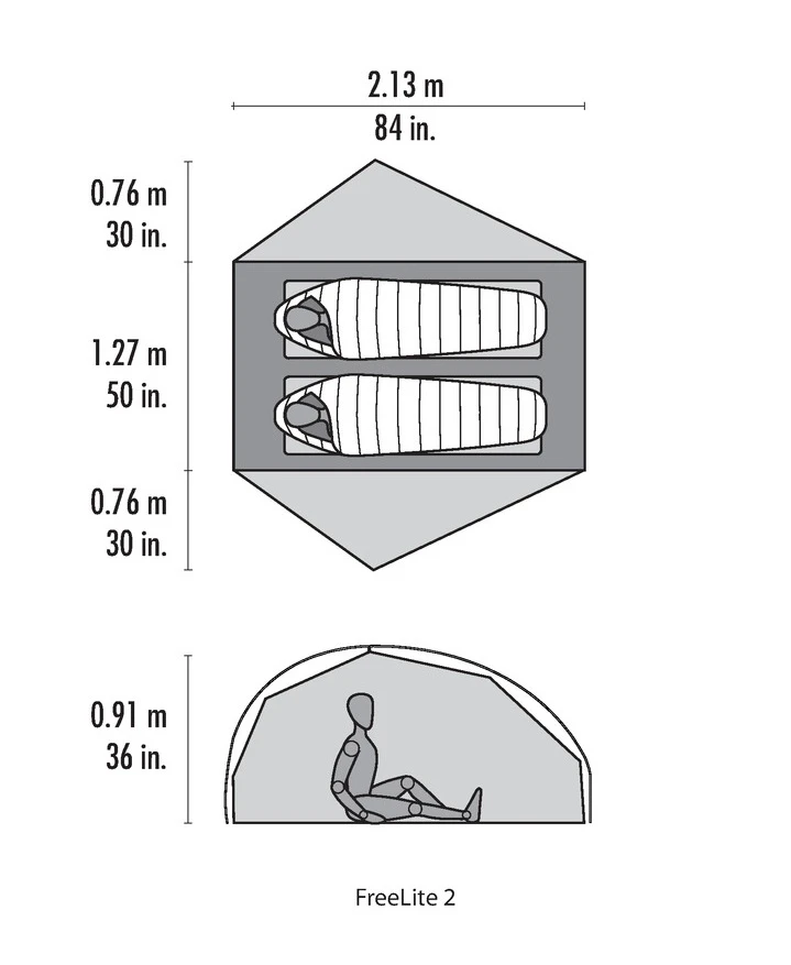 Trotz einer rechteckigen Grundfläche (ohne wie sonst übliche konische Seiten) und einer Giebelhöhe von 1 Meter (7,6 cm als zuvor) wiegt das FreeLite 2 für zwei Personen 226 g weniger als das Vorgängermodell. Die Zeltplane aus Mikromesh erlaubt ausgezeichnete Lüftung, ein wasserdichter Wannenboden schützt vor Nässe und Kälte. Zwei kurvenfreie Zelttüren sorgen für Ein- und Austreten, ohne den Partner beim Schlaf zu stören. Die Türen haben neue Reißverschlüsse, die haltbarer sind und sich mit einer Hand bedienen lassen. Zudem schließen sich die Reißverschlüsse immer an derselben Stelle, damit die Schieber auch im Dunkeln gefunden werden können. Neue Taschen für Geräte aller Art mit Kabelführungen an den Ecken für Kopfhörer und Ladekabel. Ausrüstungsablage über Kopfhöhe ist ideal für Stirnlampen, Sonnenbrillen und mehr.