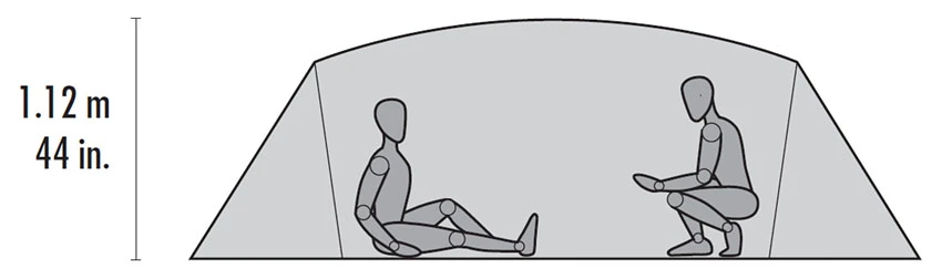 – Maximaler Platz: Viel Bewegungsfreiheit im Kopf- und Ellenbogenbereich im gesamten Zelt, zwei große Eingangsbereiche seitlich bieten Platz für die Ausrüstung.
