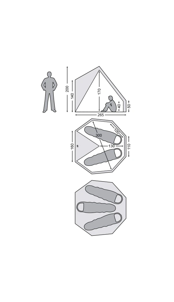 • Größe Überzelt (LxBxH) : 300 x 265 x 200 cm