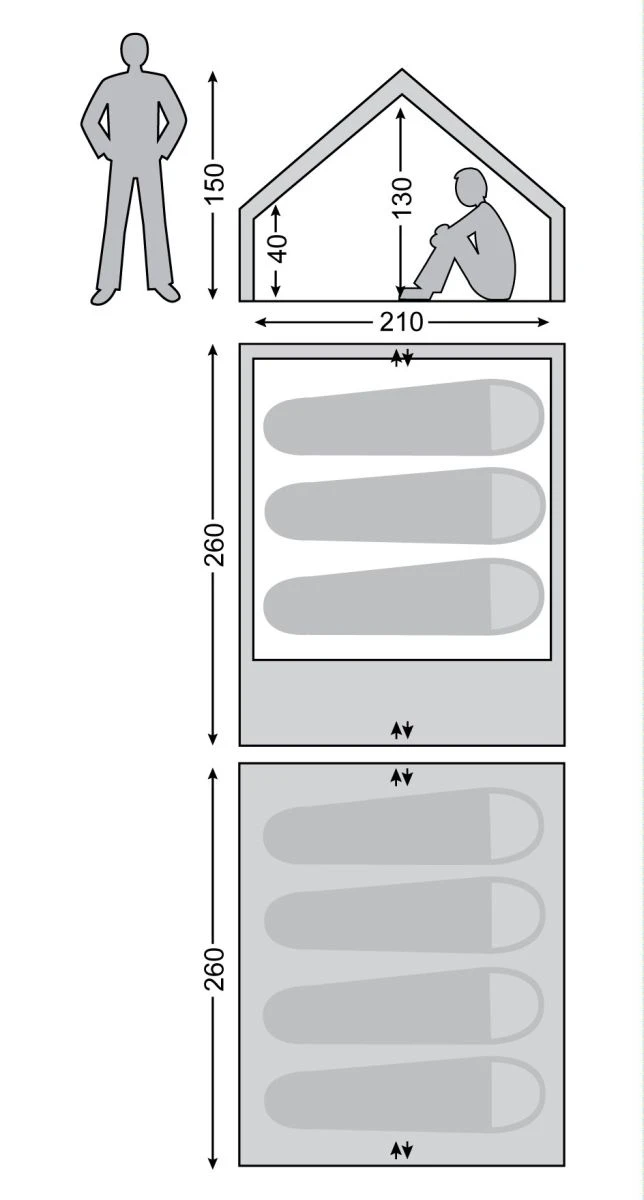 • Größe Überzelt (LxBxH) : 210 x 260 x 150 cm