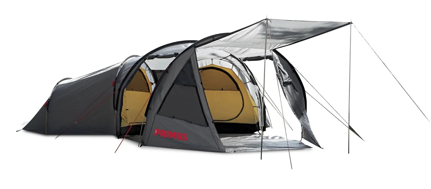 Das Primus Bifrost Y6 Zelt hat zwei getrennten Schlafbereichen für jeweils 3 Personen, die durch eine Kuppel miteinander verbunden sind. Das Zelt ist ideal für mehrere Personen mit großem Platzbedarf. Das Außenzelt besteht aus PU-beschichtetem Polyester und hat eine Wassersäule von 3000 mm. Das Innenzelt besteht aus Oxford Polyester-Gewebe. Der Boden hat eine Wassersäule von 7000 mm. Das Zelt ist mit Sturmleinen ausgestattet. Das Bifrost Y6 verfügt über blickdichte Fenster und einen Boden, der einfach in den Wohnbereich eingeknöpft wird. Zudem wird das Zelt jetzt mit zusätzlichen Aufstellstangen ausgeliefert, um den Eingangsbereich vor Regen und Sonne zu schützen.
