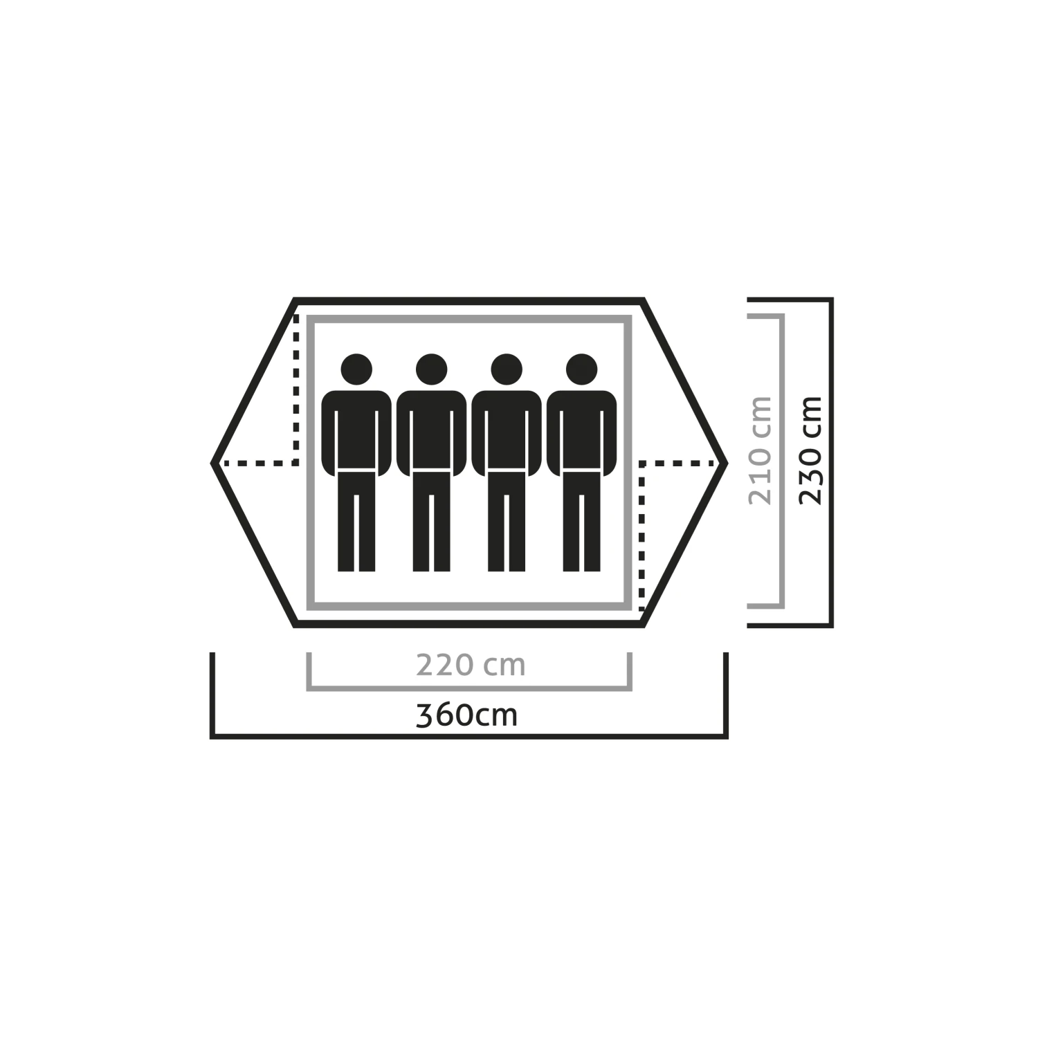 Vielseitiges und robustes 4 Personen Basiszelt für drei Jahreszeiten zum Trekking und Hiking in den Bergen.