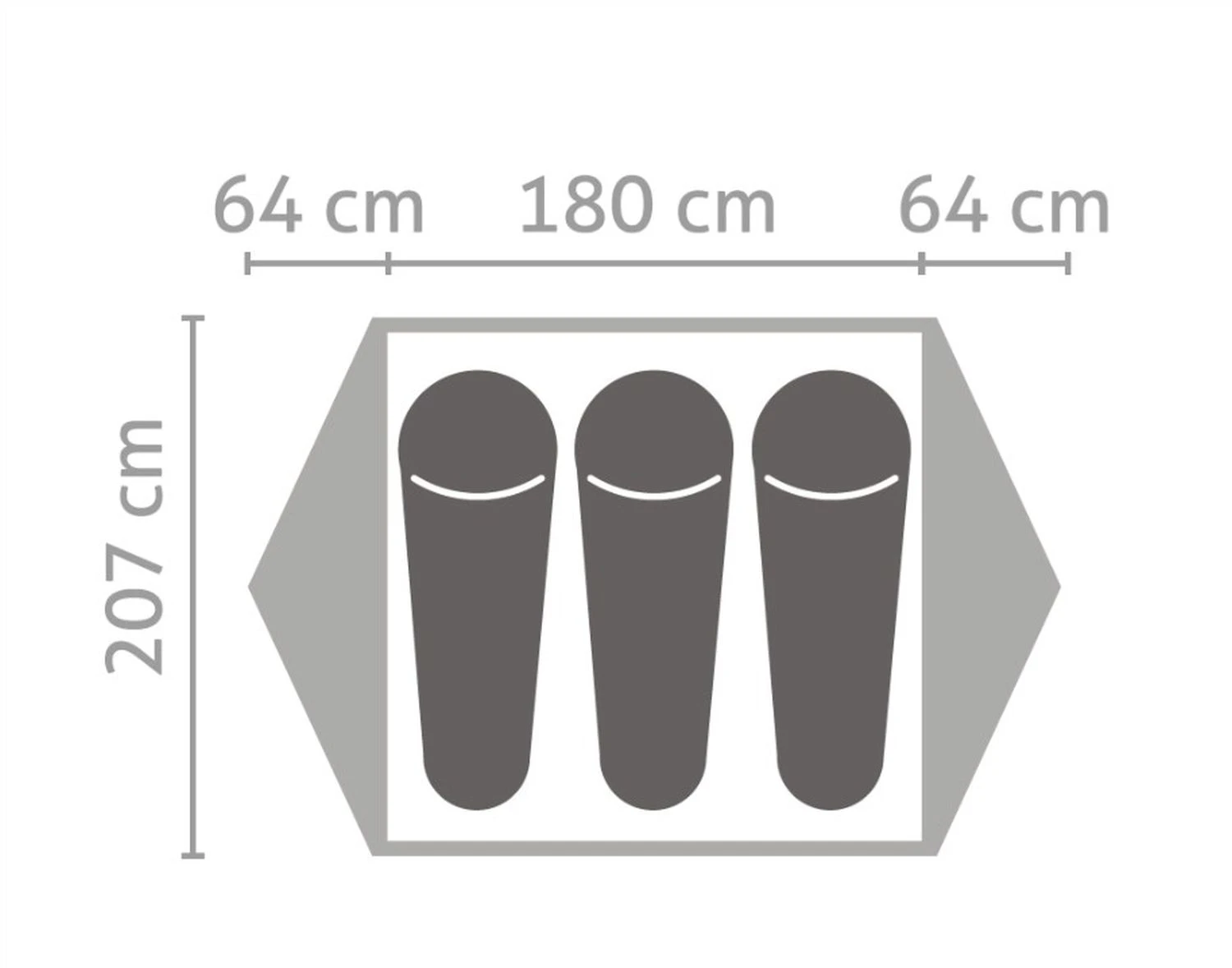Das Latitude III wurde so entworfen, dass es so leicht wie möglich ist und ein kleines Packmaß hat. Es bietet eine komfortable Basis für alpines Trekking oder Bergtouren, auf denen du ausreichend Platz für drei Personen benötigst. Das wasserdichte Außenzelt aus PU-beschichtetem Ripstop-Polyester sowie das Gestänge aus glasverstärktem Kunststoff und Aluminium garantieren guten Wetterschutz und die stabile, doppelwandige Kuppelkonstruktion mit zwei Stangen für die Kuppel sowie einer Stange für das Vorzelt (es werden nur zwei Abspannleinen benötigt) ermöglicht einen schnellen und leichten Aufbau. Außerdem bietet es dir dadurch eine großzügige Höhe im Innenraum, eine gute Luftzirkulation zwischen dem Innen- und dem Außenzelt, zwei geräumige, durchdachte Vorzelte für deine Ausrüstung oder zum Kochen sowie den Luxus von zwei separaten Eingängen, wenn du nachts nach draußen möchtest oder frühmorgens schnell aufbrechen möchtest. Insgesamt wiegt es nur 2,8 kg und hat in dem dazugehörigen, komprimierbaren Packsack ein sehr kleines Packmaß.