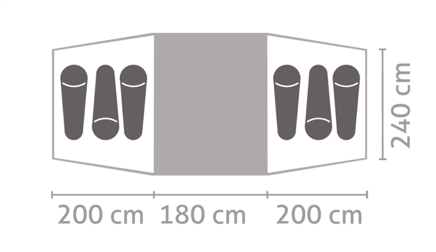 Dieses alpine Familienzelt bietet bis zu sechs Personen einen komfortablen Schlafplatz.