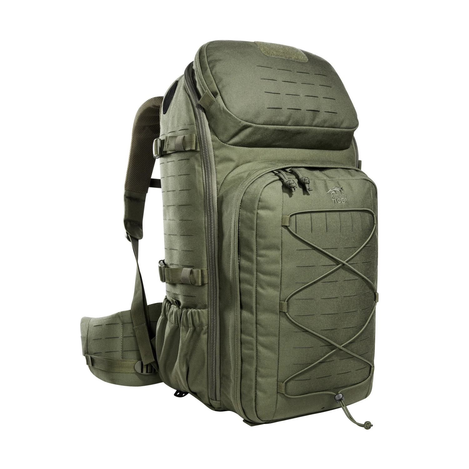 Universeller militärischer Einsatzrucksack mit zwei Aufsatztaschen und V2 Plus-Tragesystem. Basierend auf dem Vorgängermodell, bietet der Trooper Pack MK II eine optimierte Aufteilung und neue funktionale Features. Das Hauptfach des Rucksacks lässt sich komplett öffnen, die spezielle Reißverschlussführung ermöglicht es, den Rucksack auch als Toploader zu nutzen. Die Rückwände von Haupt- und Frontfächern sind mit MOLLE-Klett für die individuelle, modulare Bestückung belegt, beide Frontfächer verfügen über Reißverschluss-Netztaschen zur Organisation. Lasercut-MOLLE auf der Front und an den Seiten des Rucksacks ermöglicht die Anbringung zusätzlicher Taschen oder Ausrüstung. Der Rucksack besitzt eine integrierte Regenhülle und einen abnehmbaren Hüftgurt, der sich auch als Warrior Belt nutzen lässt. Das Rückensystem ist auf verschiedene Rückenlängen einstellbar.