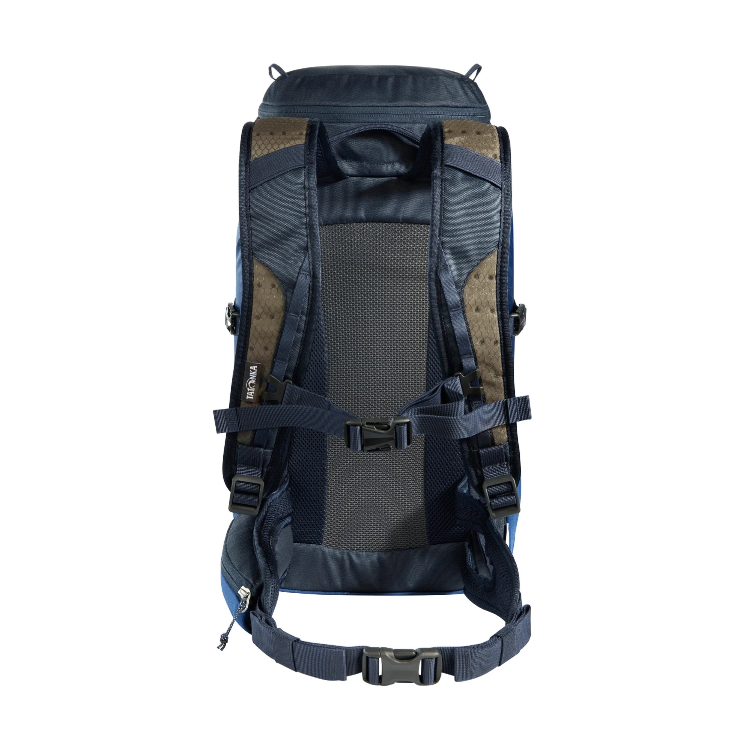 Klassischer Toploader-Wanderrucksack mit komfortablem, belüftetem Netzücken, 27 Liter Volumen, Hüftgurt mit Reißverschlusstasche, Wanderstockhalterung, Regenhülle und einer vorderen Einstecktasche für Klettersteig-Helm, Jacke oder ähnliches. Aus anteilig recycelten Materialien gefertigt
