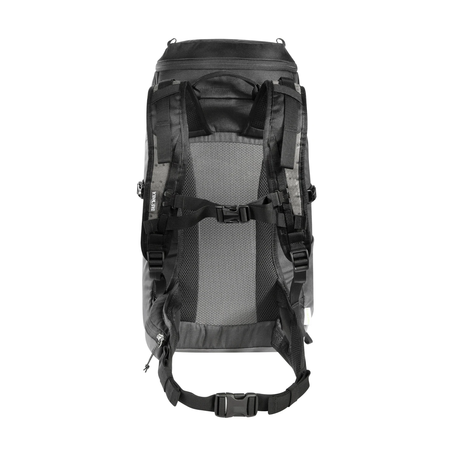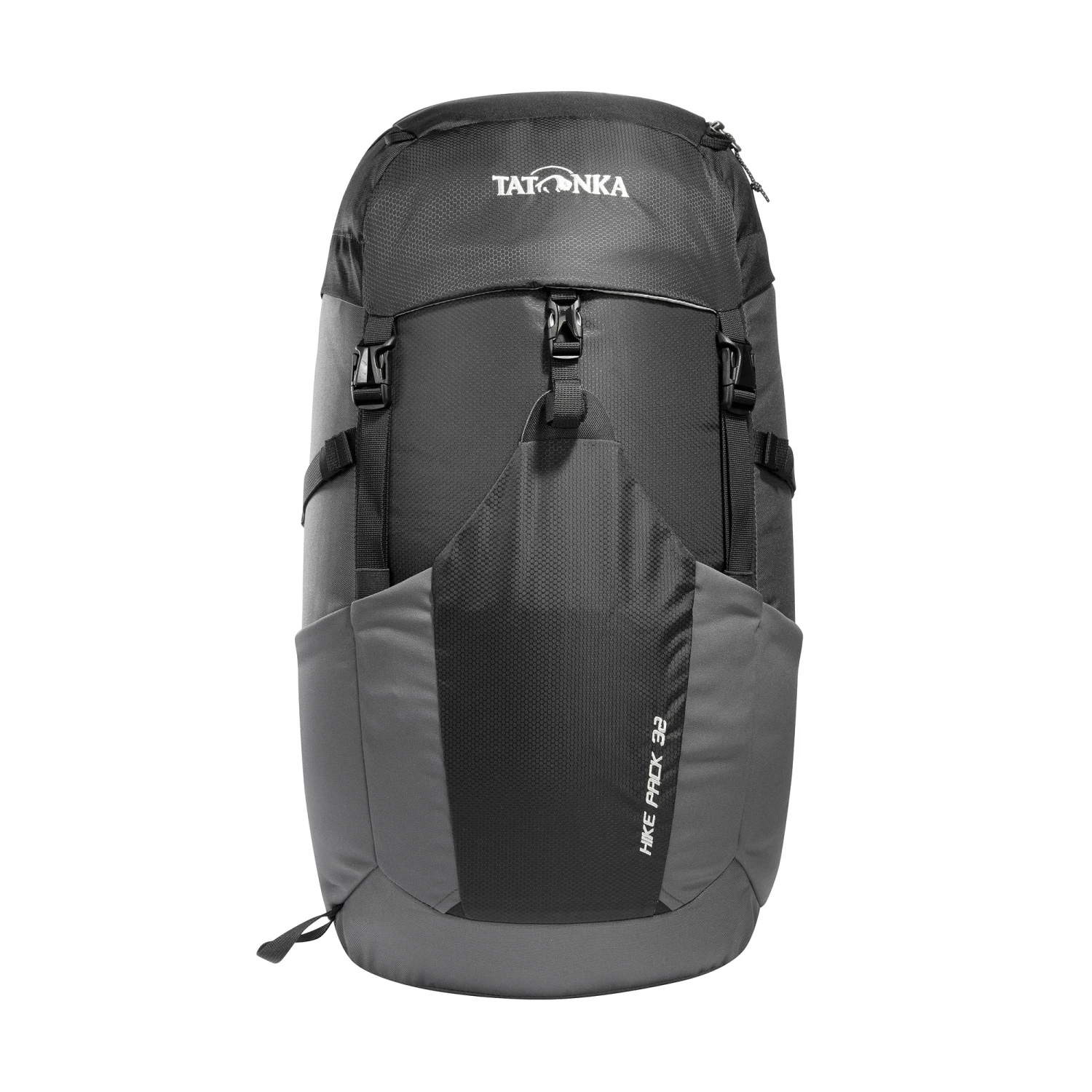 Klassischer Toploader-Wanderrucksack mit komfortablem, belüftetem Netzücken, 32 Liter Volumen, Hüftgurt mit Reißverschlusstasche, Wanderstockhalterung, Regenhülle und einer vorderen Einstecktasche für Klettersteig-Helm, Jacke oder ähnliches. Aus anteilig recycelten Materialien gefertigt.