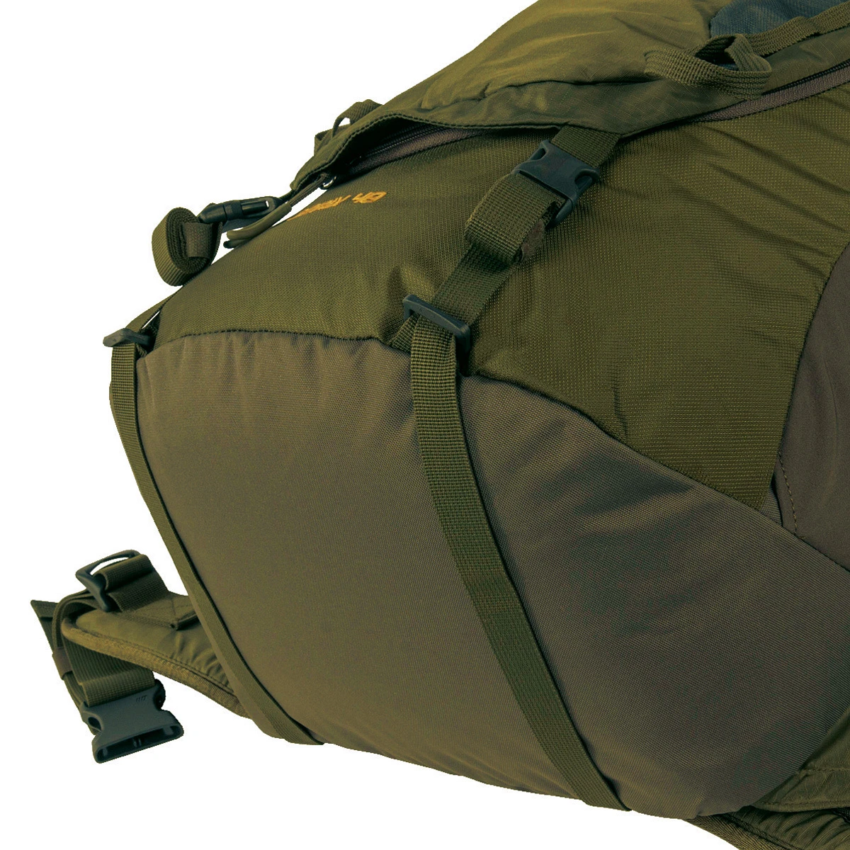 Der Tatonka Norix 48 bietet eine praktische Unterteilung in Haupt- und Bodenfach und ist mit Seitentaschen und einer Fronttasche versehen. Materialschlaufen auf dem Deckel und der Front ermöglichen die Anbringung weiterer Ausrüstung.