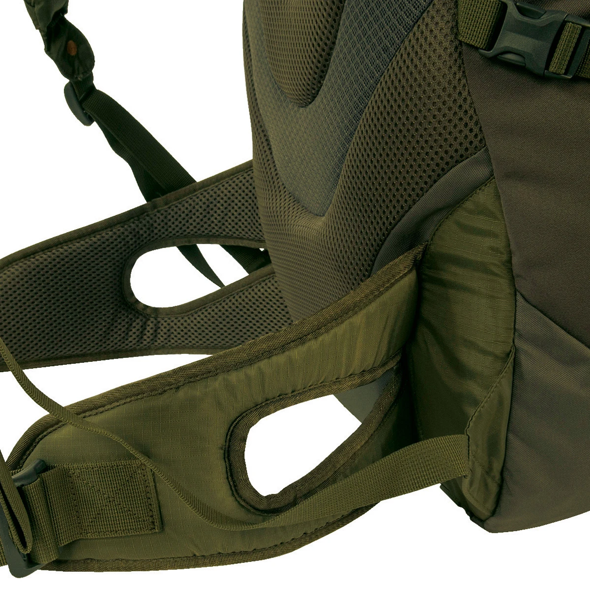 Das Tragesystem des Tourenrucksacks lässt sich an verschiedene Rückenlängen anpassen. Es überträgt die Last in den Hüftbereich und entlastet so Schultern und Rücken.