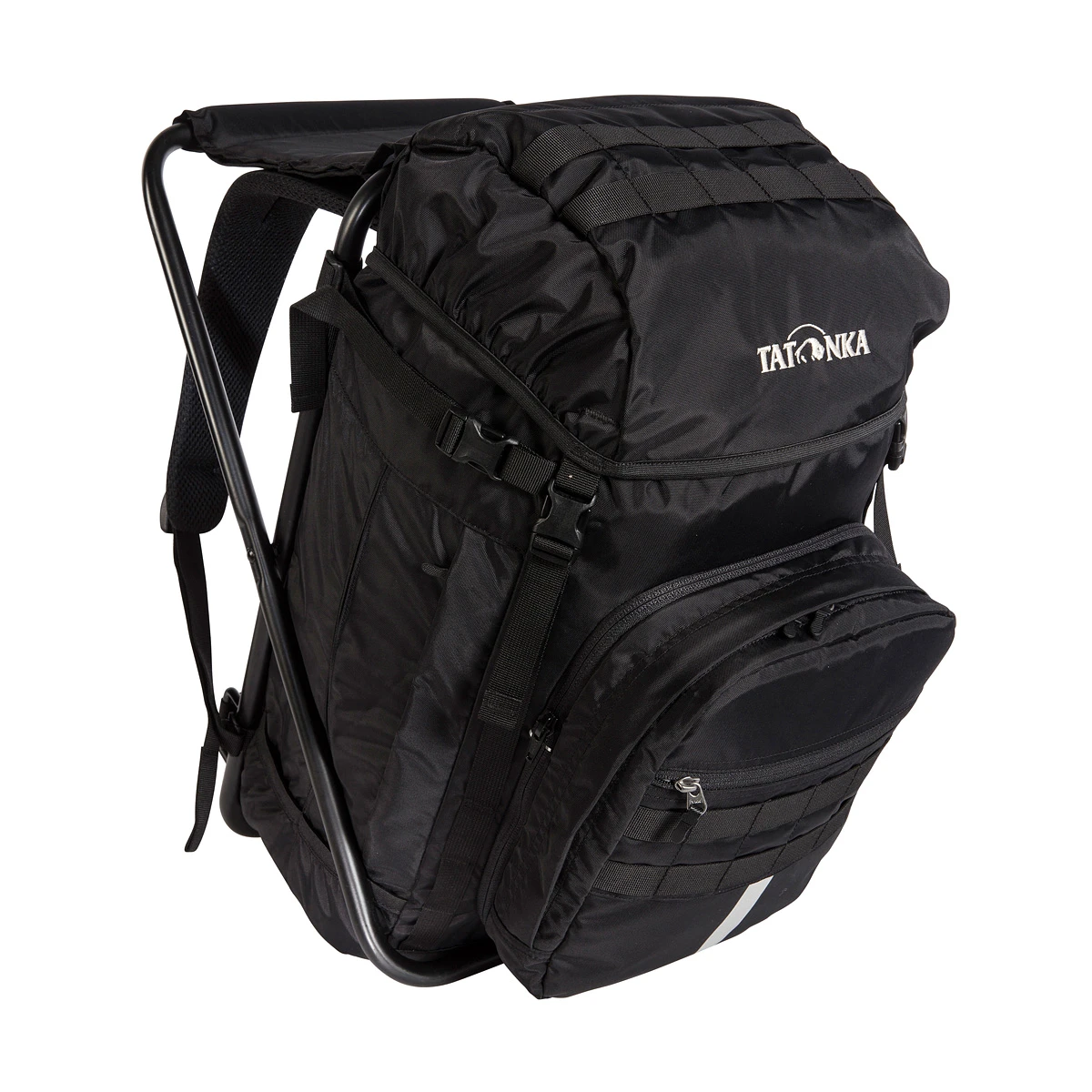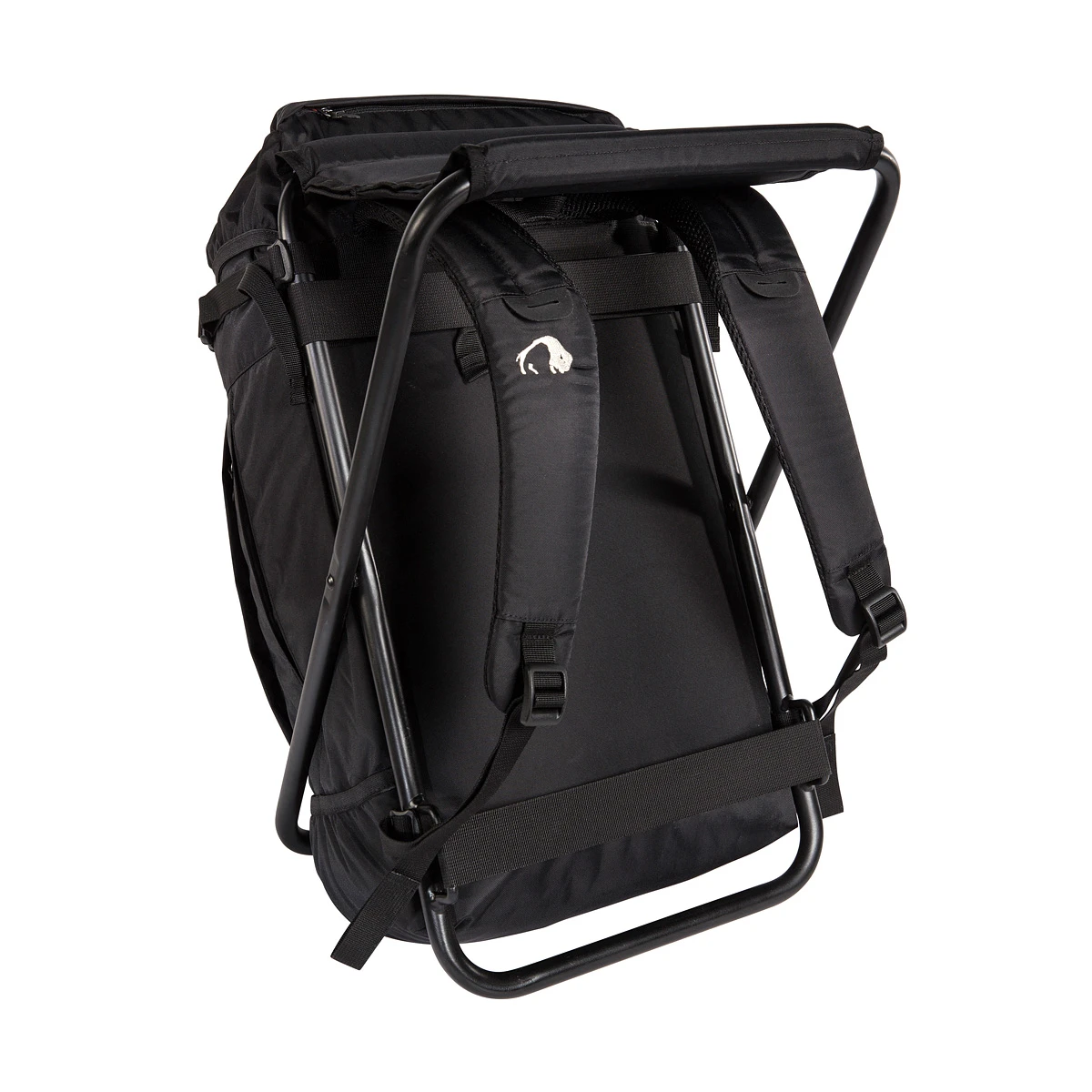 Rucksack mit integriertem Hocker und 35 Liter Volumen. Perfekt für Wandern, Angeln oder auf Festivals.