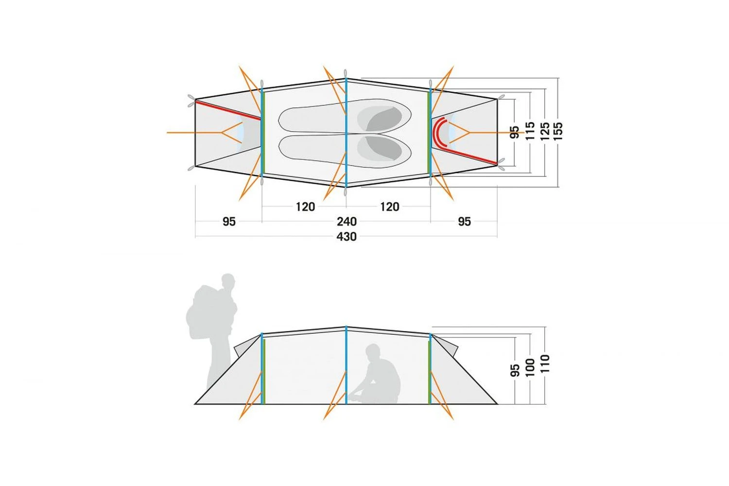 Durch die Zugänge auf beiden Seiten sowie Lüfter bietet das Zelt außerdem bei Bedarf eine Top-Belüftung.