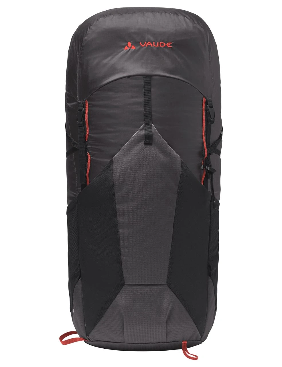 Wenn beim Trekking jedes Gramm zählt: Der Lightweight-Trekkingrucksack bietet hohen Tragekomfort bei niedrigem Gewicht – ideal für schnelle Wanderungen und zum Pilgern. Der ultraleichte Trekkingrucksack ist rückenfreundlich gepolstert: Die Aussparung am unteren Rücken mindert den Druck auf das Iliosakralgelenk und beugt Rückenschmerzen vor. Das Tergolight Comfort Space-Tragesystem verteilt die Last optimal. Rückenlänge sowie Lastenpositionierung sind individuell einstellbar. Die luftigen Ergoshape-Schultergurte des Ahead 48+ lassen dank ihrer speziellen Form genug Bewegungsfreiheit für die Arme bei steilen Aufstiegen. Energieriegel oder Handy sind in den Taschen an Schulterträgern und Hüftgurt griffbereit. Aus den elastischen Seitentaschen lassen sich Trinkflasche, Mütze usw. entnehmen, ohne den Trekkingrucksack abzusetzen. Trekkingstöcke können einfach beim Gehen befestigt werden. Feuchte Ausrüstung findet im geräumigen Frontfach Platz und trocknet dank Mesheinsätzen ab. Die variable Daisy Chain nimmt Helm und Steigeisen auf. Der Toplader hat ein extra Fach für die Trinkblase. Die Ersatzschnalle am oberen Kompressionsriemen ersetzt unterwegs eventuell defekte Schnallen. Der höhenverstellbare, abnehmbare Deckel erweitert das Volumen um weitere 8 Liter und lässt sich zudem separat als Hüfttasche tragen. Das Material des Ahead 48+ besteht aus einem Mix aus zu 100 % recyceltem Polyester sowie Polyamid mit einem biobasierten Anteil aus 62 % Rizinusöl – ein äußerst leichtes, reißfestes, nachhaltiges Material. Das VAUDE Green Shape-Label steht für ein umweltfreundliches, funktionelles Produkt aus bluesign® zertifizierten, nachhaltigen Materialien.