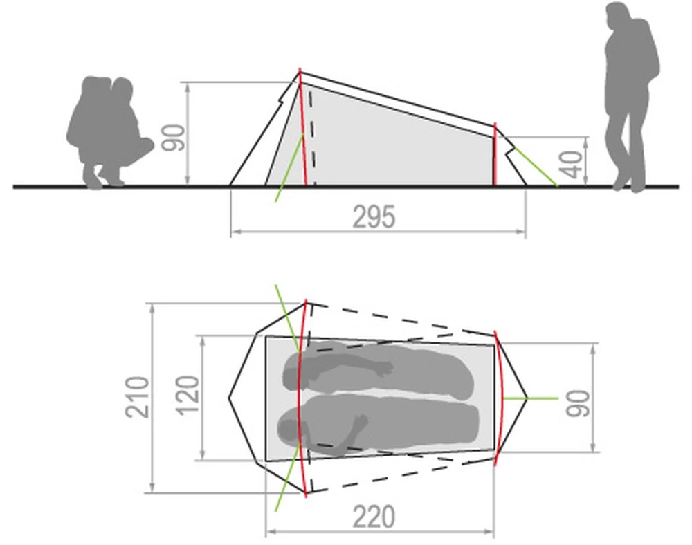 • Außenzelt: 100% Polyester; 75 D Polyurethane coated 3.000 mm;