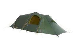 Innovative Zeltkonstruktion mit großem Platzangebot und exzellenter Belüftung. Der Raum des windstabilen Familienzeltes wird durch das abgewinkelte Gestänge im Fußbereich und zusätzliche Stäbe im Außenzelt nochmals erweitert. Alle Kammern sind mit gleichhohen Gestängebögen versehen, so dass keine Verwechslungsgefahr besteht und der Aufbau leicht von der Hand geht. Darüber hinaus ermöglicht das außenliegende Gestänge den bequemen Aufbau des Innen-und Außenzelt in einem Schritt. Einzigartig ist der sehr geräumige, gestängefreie Innenraum mit einer zentralen Ventilationskuppel für ein perfektes Raumklima. Großzügige Netzfenster bringen viel Licht und frische Luft in das Zelt, eine praktische Organizer-Tasche sorgt für hilfreiche Ordnung und die Bodenunterlage für trockene Füße.