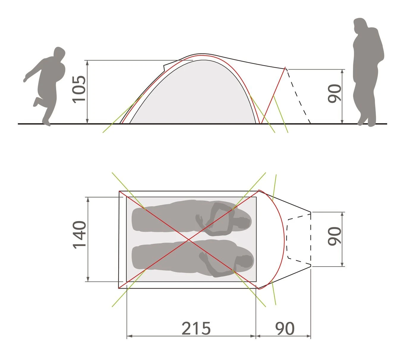 Vielseitiges Zweipersonenzelt mit erweitertem Vorraum