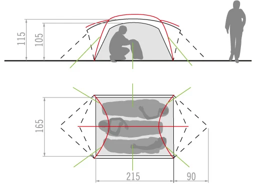 • Außenzelt: 100% Polyamid; 40 D Ripstop both sides Silicone coated 3.000 mm;