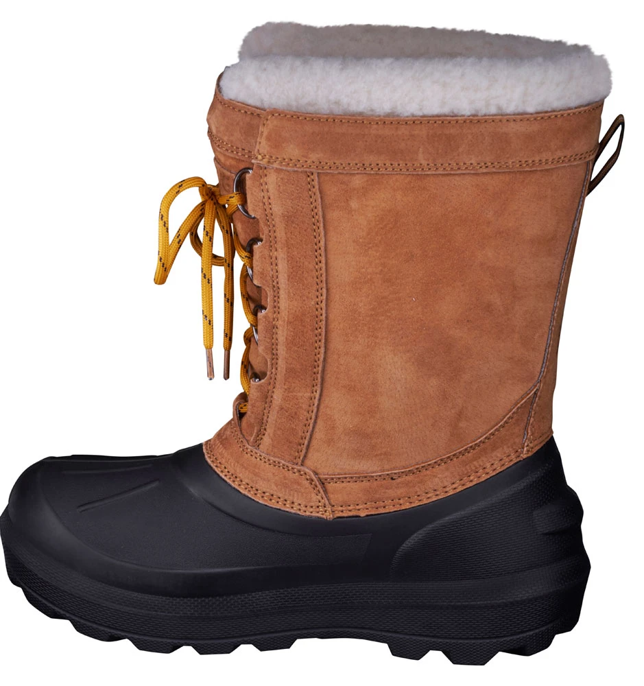 Um in genau solchen Situationen warme Füße und besten Tragekomfort zu garantieren, entwickelte Viking Footwear den Svartisen. Dieser Hybrid-Thermo-Stiefel vereint die hervorragenden Wärme- und Isolationseigenschaften von konventionellen Thermostiefeln mit einem Schaft aus hochwertigem und wasserabweisendem Leder. Der Schaft aus Wildleder geht auf Knöchelhöhe in einen Schuh aus 100% wasserdichtem BASF Polyurethane (PU) über. Dieses biologisch abbaubare Material hat durch Millionen winziger Luftblasen im Inneren hervorragende Isolationseigenschaften, bleibt selbst bei -25 °C flexibel und gewährleistet angenehm warme Füße. Unterstützt wird die wärmende Funktion durch den herausnehmbaren Innenschuh mit 6 mm dicker Woll-Fütterung (50 % Echtwolle, 50%Polyester). Die Wolle sorgt für eine zusätzliche Wärmeisolation und lässt die Luft im Inneren zirkulieren, woraus sich ein angenehm warmes Schuhklima ergibt. Zudem ist Wolle antibakteriell und schützt vor unangenehmen Gerüchen. Ein weiteres Feature des Innenschuhs ist seine anti-rutsch-beschichtetet Sohle, wodurch der Innenschuh auch als Hüttenhausschuh verwendet werden kann. Für den hohen Tragekomfort sorgt Viking Footwears bequemer nordischer Leisten, der einen angenehm festen Sitz bei einer etwas weiteren Passform bietet. Dadurch haben die Zehen im Vorderfußbereich ausreichend Bewegungsfreiheit und die Luft im Schuh kann besser zirkulieren. Dank des Schnürsystems mit Schnellverschluss, kann die Passform selbst mit Handschuhen jederzeit schnell und einfach nachjustiert werden. Die PU-Sohle besitzt ein spezielles Muster, das extra für maximalen Grip auf Schnee entwickelt wurde.